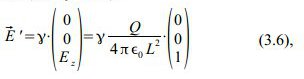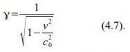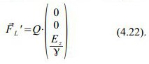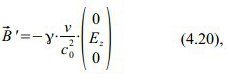 Aus Gl. (4.16) und (4.22) sieht man also, dass die Kraft quer zur Bewegungsrichtung des Bezugssystems im gestrichenen Bezugssystem um den Faktor γ kleiner ist als die Kraft im ungestrichenen Bezugssystem.