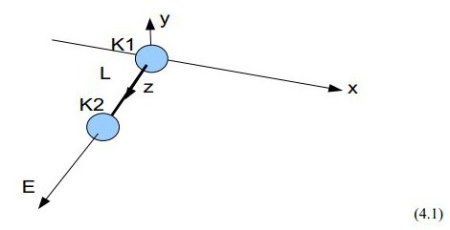 Wir wissen noch vom letzten Mal, dass der Wert Ez von der Ladung Q der Kugel K1 und vom Abstand L abhängt (wenn uns nicht nur das Startereignis interessieren würde, müßten wir statt L ganz allgemein die Koordinate z der Kugel K2 einsetzen).