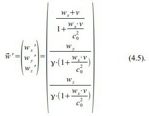 Wieder gegoogelt, hier die Transformation einer allgemeinen Geschwindigkeit w vom ungestrichenen System ins gestrichene