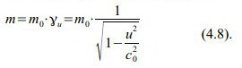 Diese Gleichung gilt auch im gestrichenen Bezugssystem, bloß muss man dort m durch m‘ ersetzen und u durch u‘. Wenn u gleich Null ist (im sogenannten Ruhesystem), dann ist der Faktor γu gleich 1 und die Masse ist dann gleich der Ruhemasse m0.