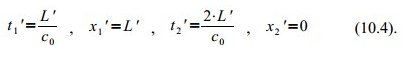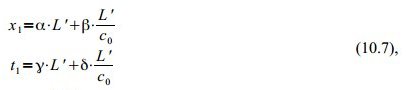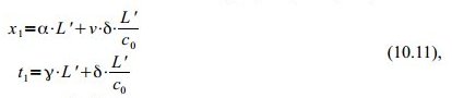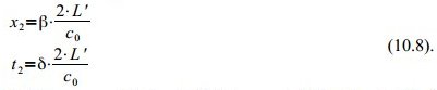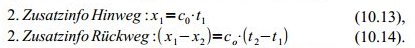 Die beiden Gleichungen (10.13) und (10.14) kann man ein wenig umschreiben, um dann die Werte x1, x2, t1 und t2 in (10.11) und (10.12) zu eliminieren.