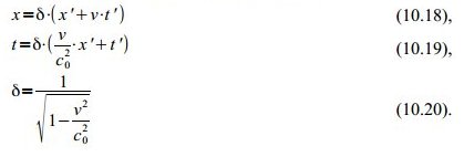 und zu den bekannten Gleichungen der Lorentz-Transformation: