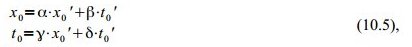 Mit (10.15) haben wir jetzt drei Gleichungen, um die vier Koeffizienten festzulegen, wobei die konkreten Ereignisse (x1, t1, x2, t2) bereits eliminiert sind.