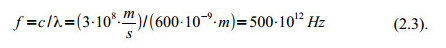 Nehmen wir zum Beispiel sichtbares Licht mit einer Wellenlänge von sagen wir mal 600 nm (das ist gelbrotes Licht), dann ergibt sich die Frequenz zu