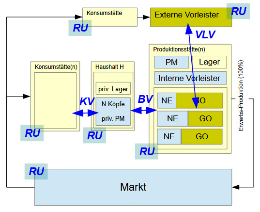 • „RU“ für die Produktion, „RU“ für die Produktion im Markt (indirekt über den Kauf-/Mietpreis), „RU“ für den Lagerzeitraum des Gutes,