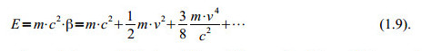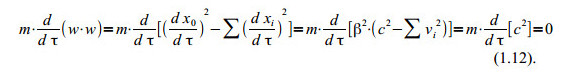 Die erste Zeile von Gleichung (1.8) entspricht dann einem kombinierten Energie- und Massenerhaltungssatz. Auch die beiden getrennten Erhaltungssätze für Energie und Masse müssen eben bei relativistischer Betrachtung zu einem kombinierten Satz zusammengefügt werden.