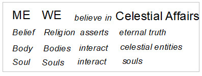 Like a scientist, who cannot know the universe, but who has to believe in the existence of the universe and its universal truth, before he can explore it, the religious people believe in what-I-call „Celestial Affairs“, get into contact and create some models for this reality.